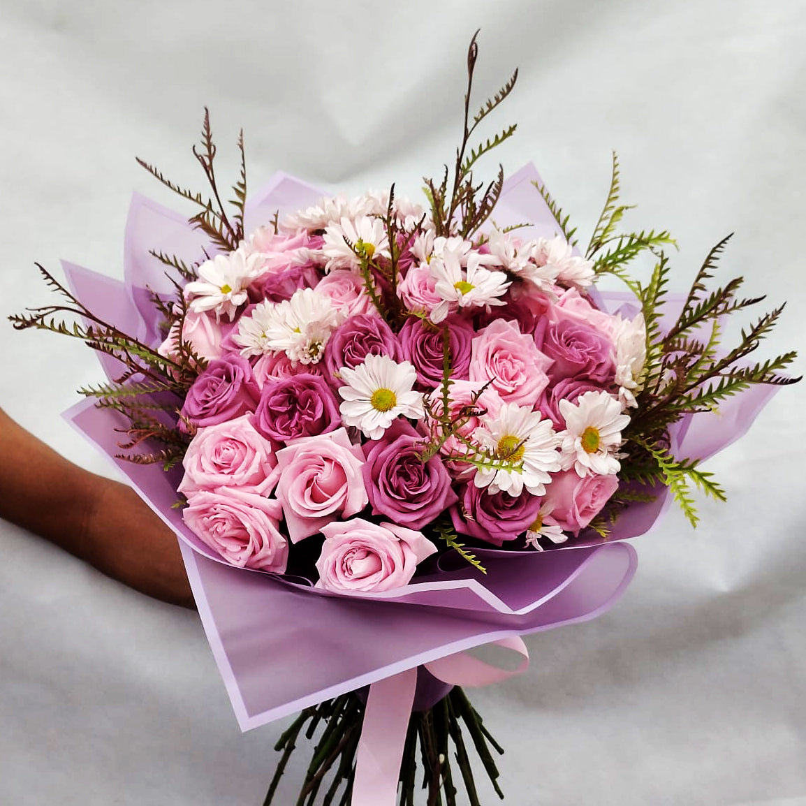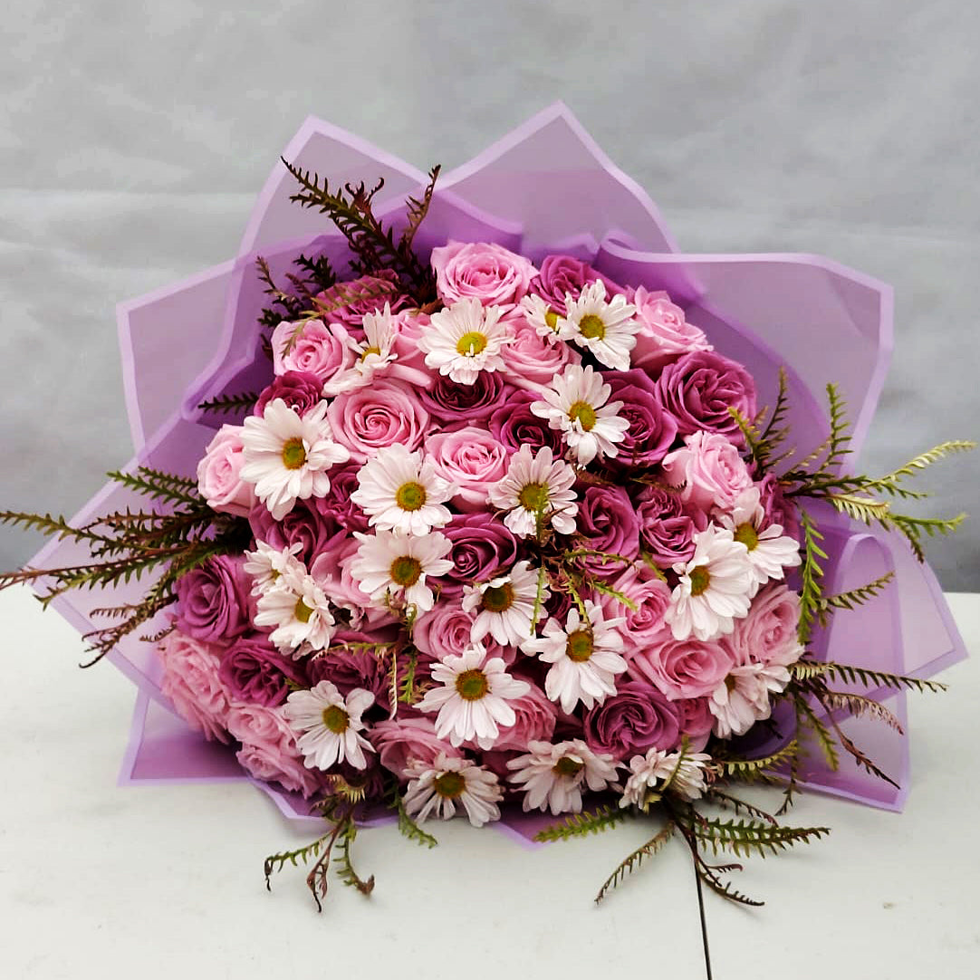 - 24 Rosas de color rosa y 24 Rosa Lilas.